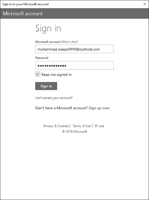 It will display the ‘Sign in’ page.